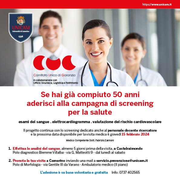 Il progetto continua con lo screening dedicato anche al personale docente ricercatore e la prossima data disponibile per la visita medica è giovedì 15 febbraio 2024