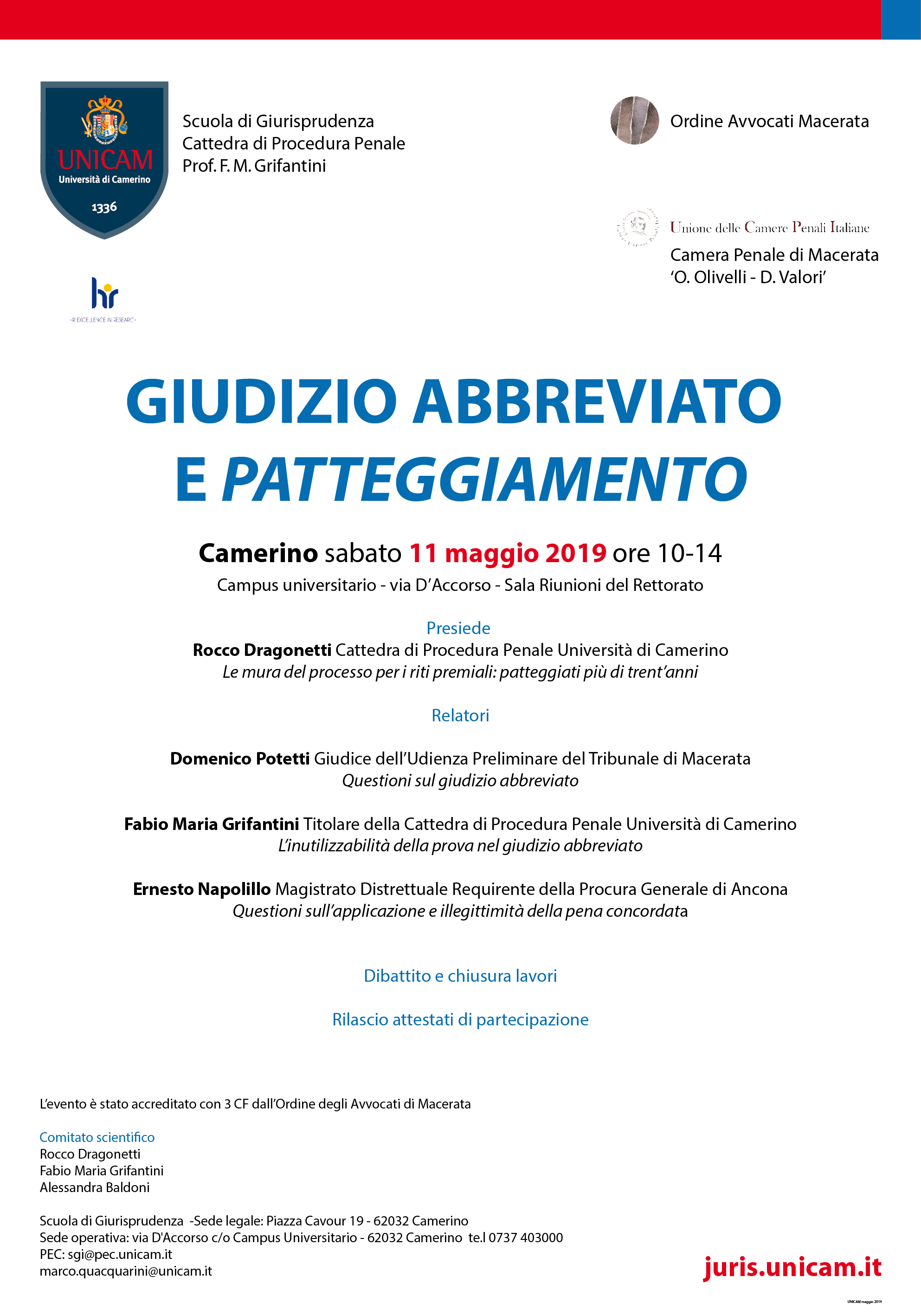 Camerino sabato 11 maggio 2019 ore 10-14 Campus universitario - via D’Accorso - Sala Riunioni del Rettorato