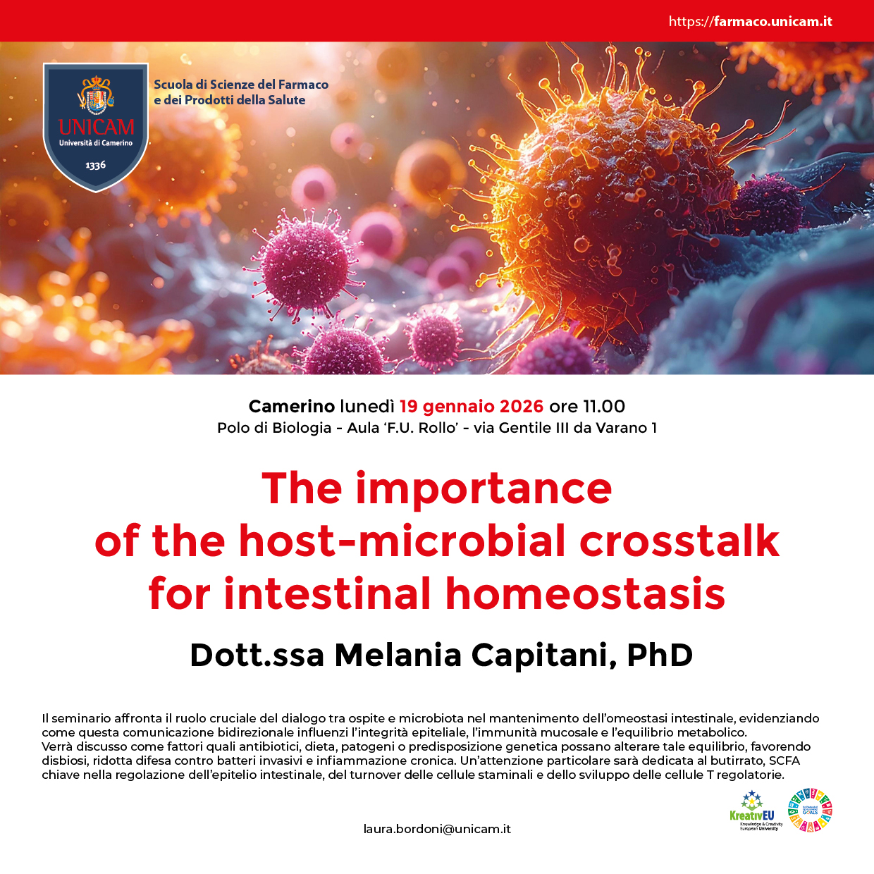 Il seminario affronta il ruolo cruciale del dialogo tra ospite e microbiota nel mantenimento dell’omeostasi intestinale, evidenziando