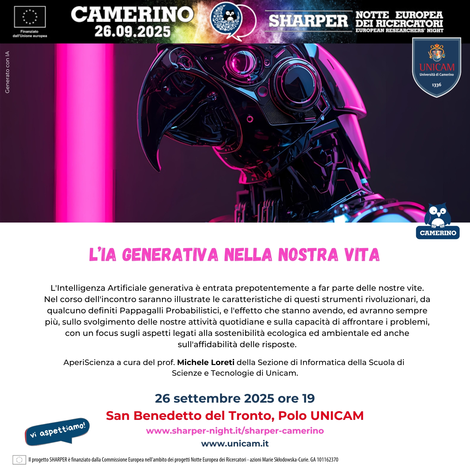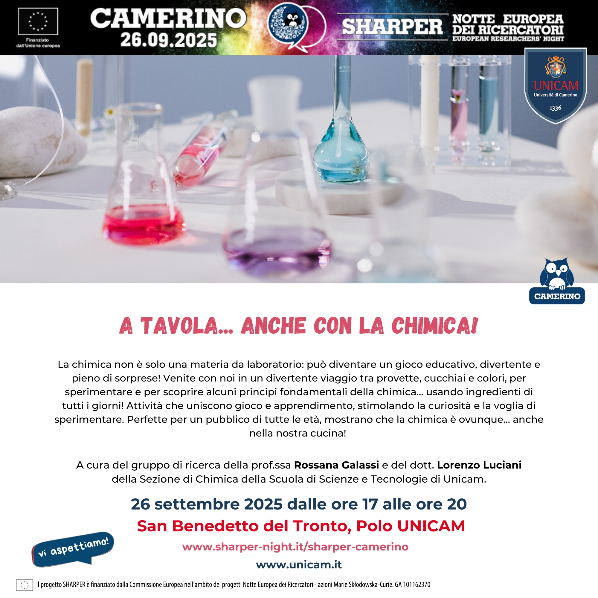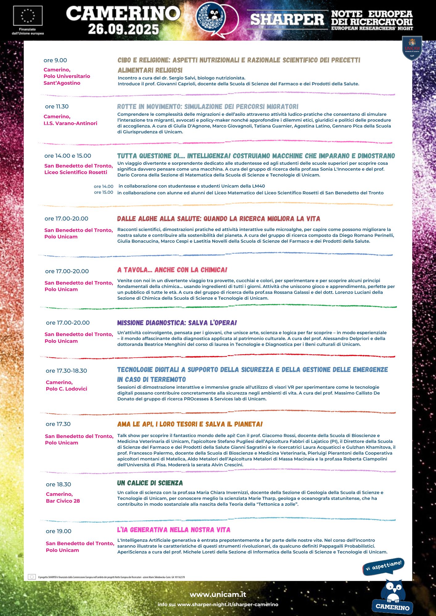 Anche quest'anno SHARPER approda a Camerino ed a San Benedetto del Tronto per proporre attività di intrattenimento e approfondimento rivolte ad un pubblico di tutte le età in compagnia delle ricercatrici e dei ricercatori dell’Ateneo camerte.