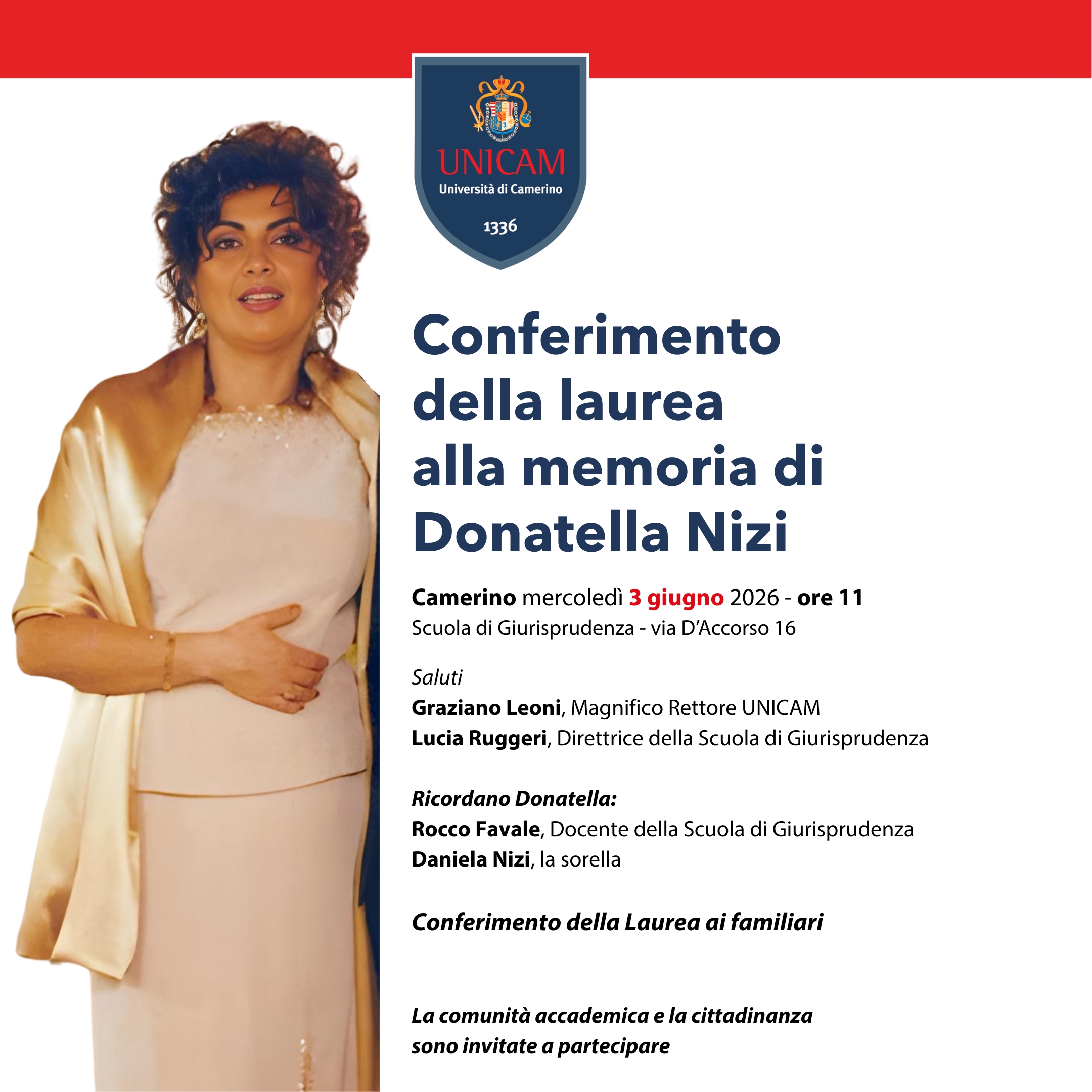 Conferimento della laurea alla memoria di Donatella Nizi