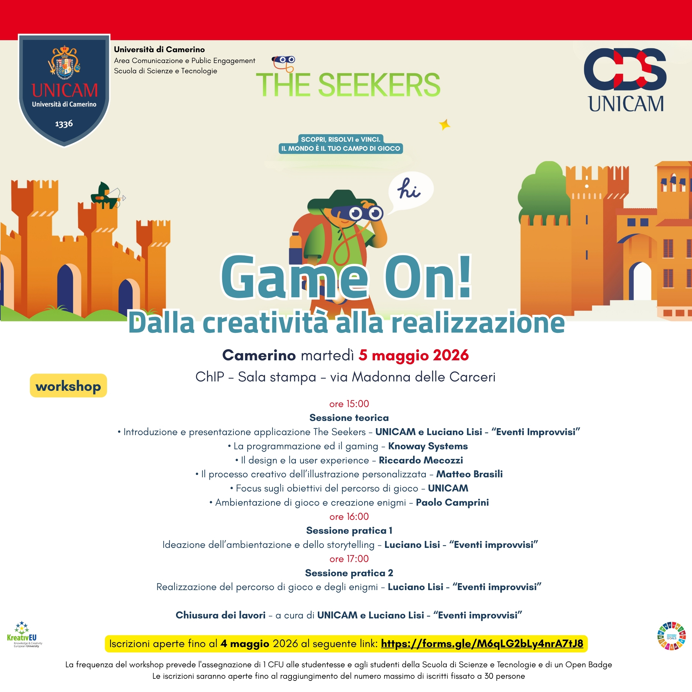 La frequenza del workshop prevede l' assegnazione di 1 CFU alle studentesse e agli studenti della Scuola di Scienze e Tecnologie e di un Open Badge
