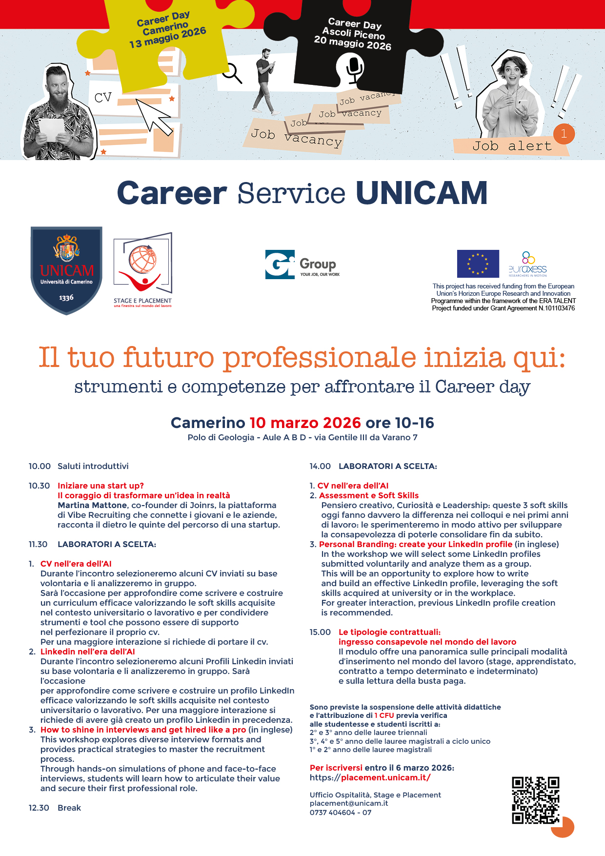Per iscriversi entro il 6 marzo 2026: https://placement.unicam.it/