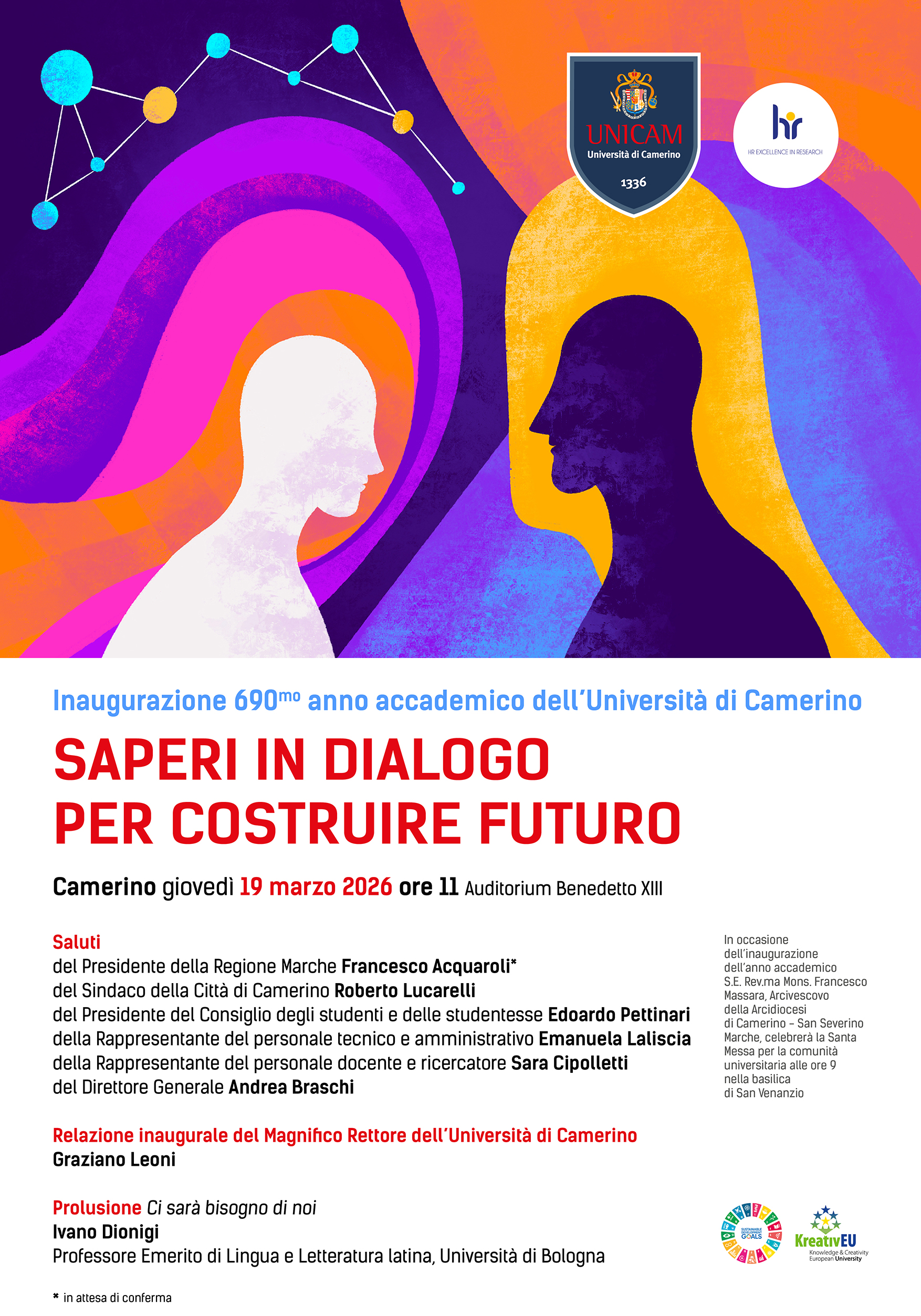 In occasione dell’inaugurazione dell’anno accademico S.E. Rev.ma Mons. Francesco Massara, Arcivescovo della Arcidiocesi di Camerino - San Severino Marche, celebrerà la Santa Messa per la comunità universitaria alle ore 9 nella basilica di San Venanzio