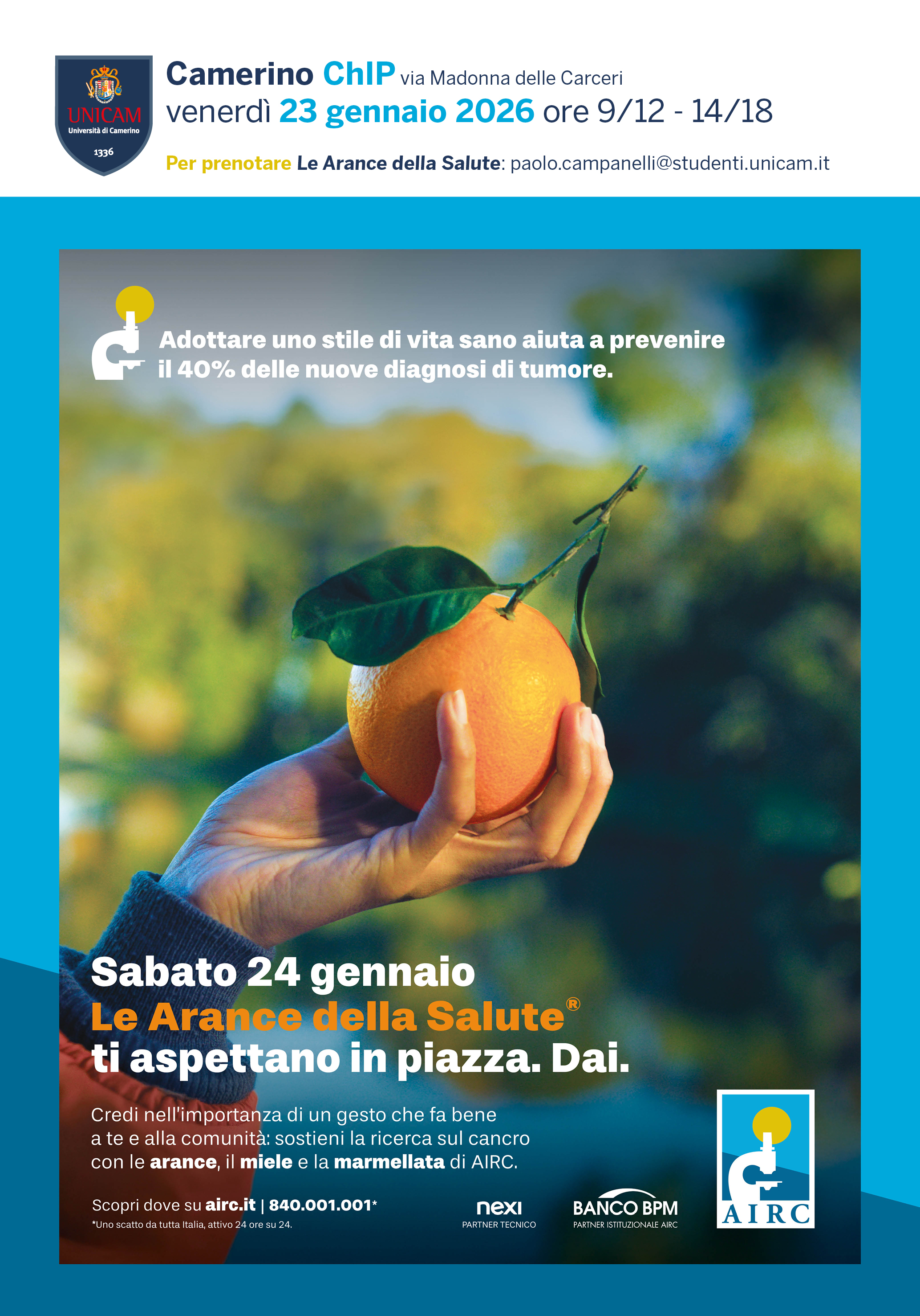 Per prenotare Le Arance della Salute: paolo.campanelli@studenti.unicam.it
