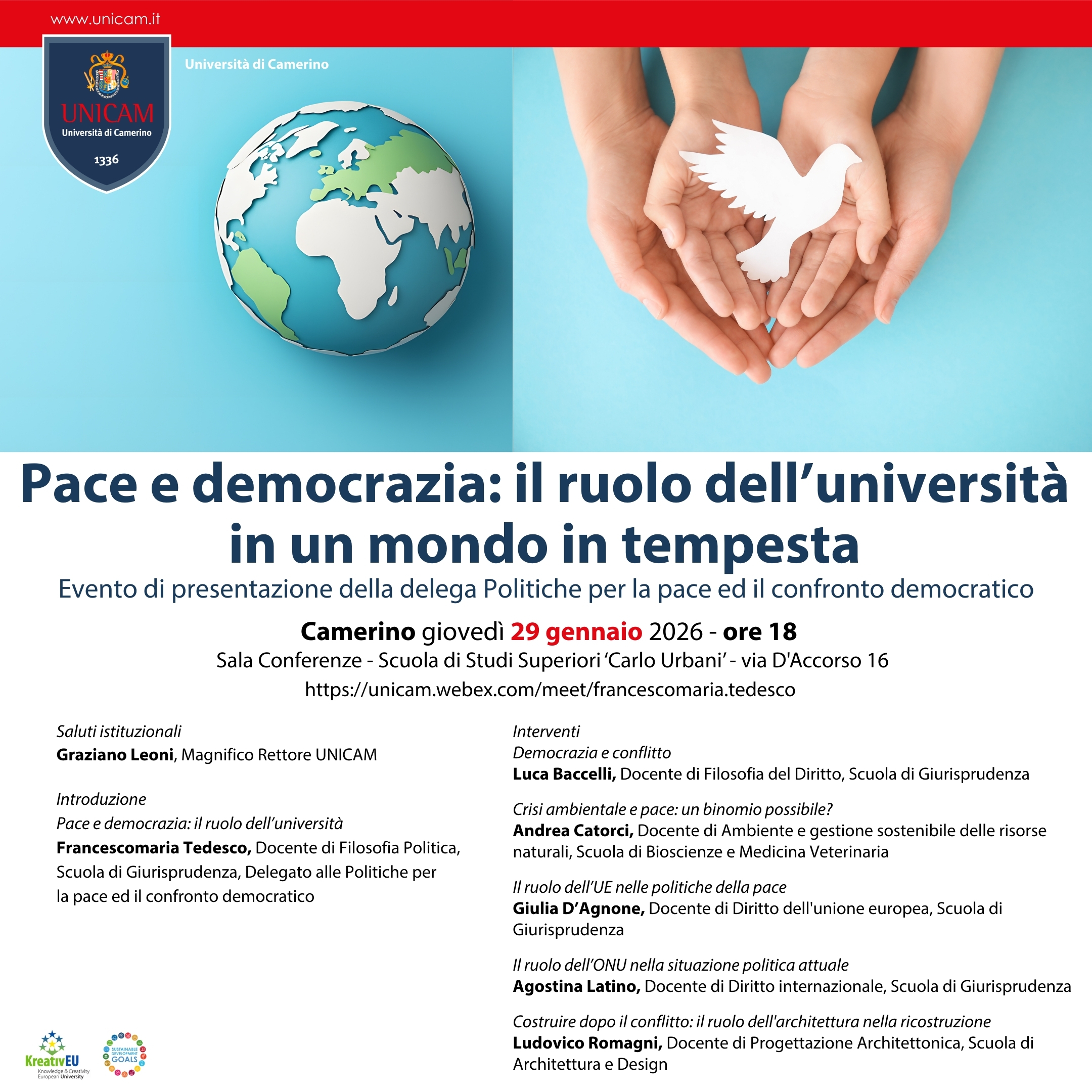 Camerino giovedì 29 gennaio 2026 - ore 18
