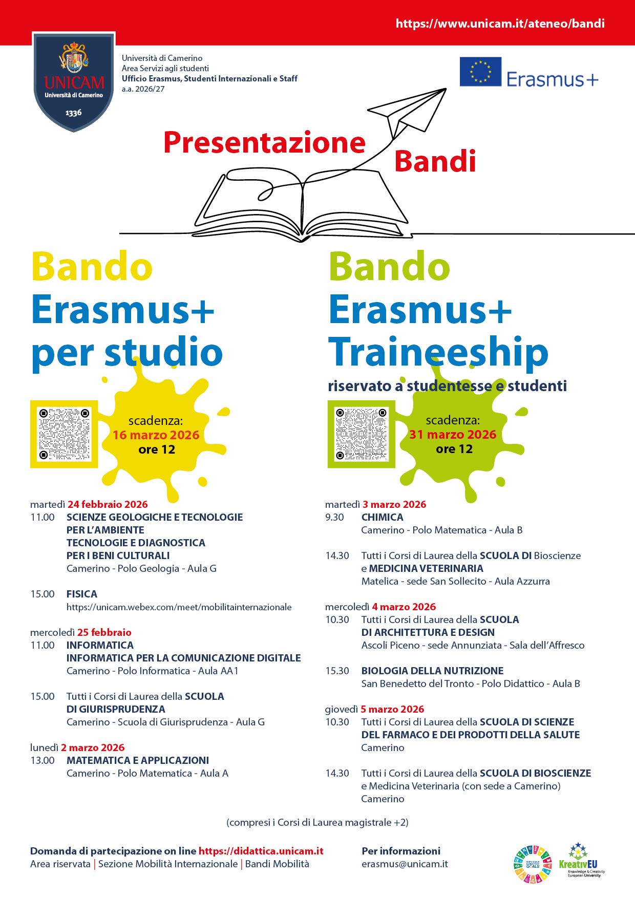 Presentazione Bandi Eramus+ per studio e Traineeship