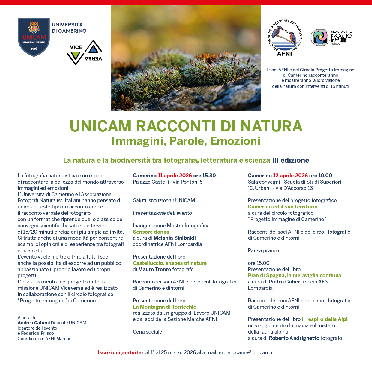 Iscrizioni gratuite dal 1° al 25 marzo 2026 alla mail: erbariocame@unicam.it